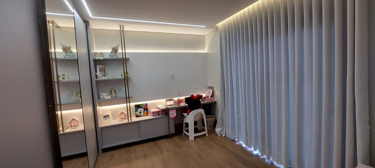 A área social conta com sala de estar, sala de jantar e área gourmet totalmente integradas, criando um ambiente amplo e elegante para receber familiares e amigos.