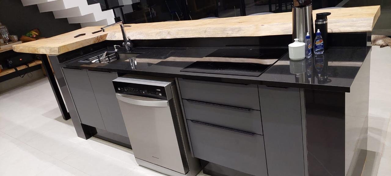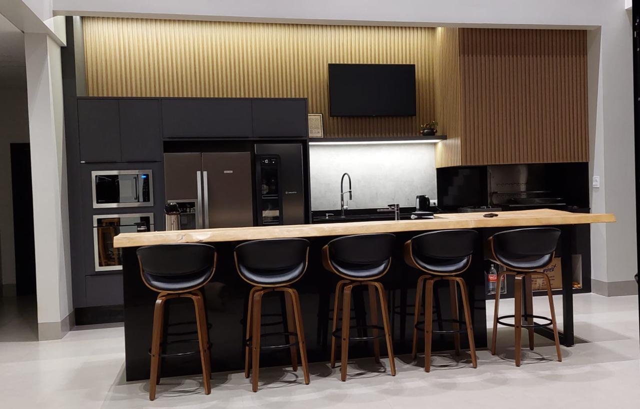 A área gourmet possui churrasqueira interna automatizada, oferecendo praticidade e conforto para momentos de confraternização.